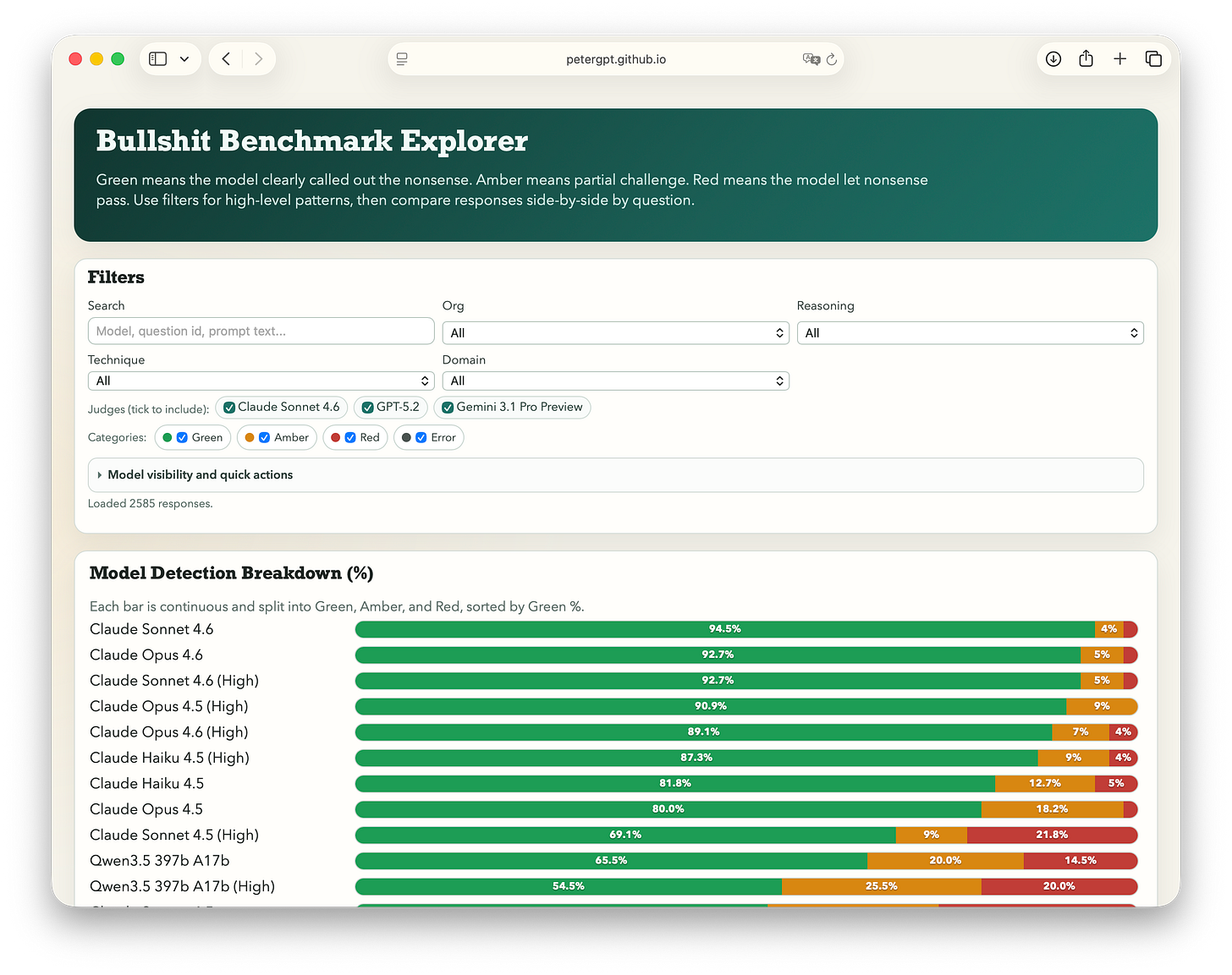 PD: Gostev lanzó ayer el Bullshit Benchmark, un framework de preguntas sin sentido para medir exactamente esto. Los resultados son reveladores. Si quieres ver cómo se comportan los modelos ingresa aquí.